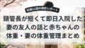 即座に除菌・消毒を行い、妻も、うつらないように手洗いうがいで予防をしていました。