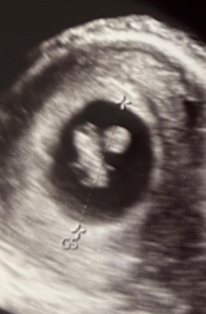 対して今回は丸っこく胎芽が見え、卵黄嚢らしきものも楕円形に見えます。