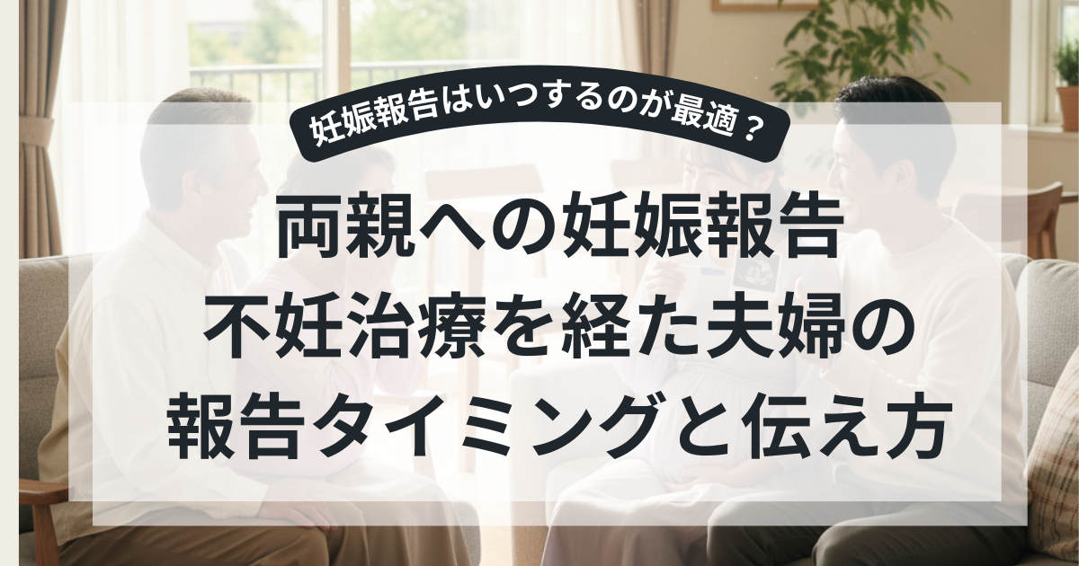 一般的な報告タイミングと、不妊治療と2回の流産を経験した夫婦の、両親への報告体験を一例として紹介します。