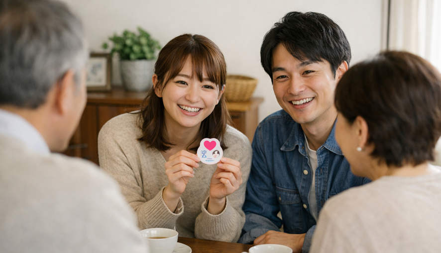妻の実家に訪問し、ちょっと座ってお話をしてから、「実はね」と言って、妊娠マークをジャジャーンと出しました。