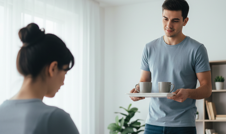 落ち着いて話せるよう、食事に誘い、3人で時間を作ります。