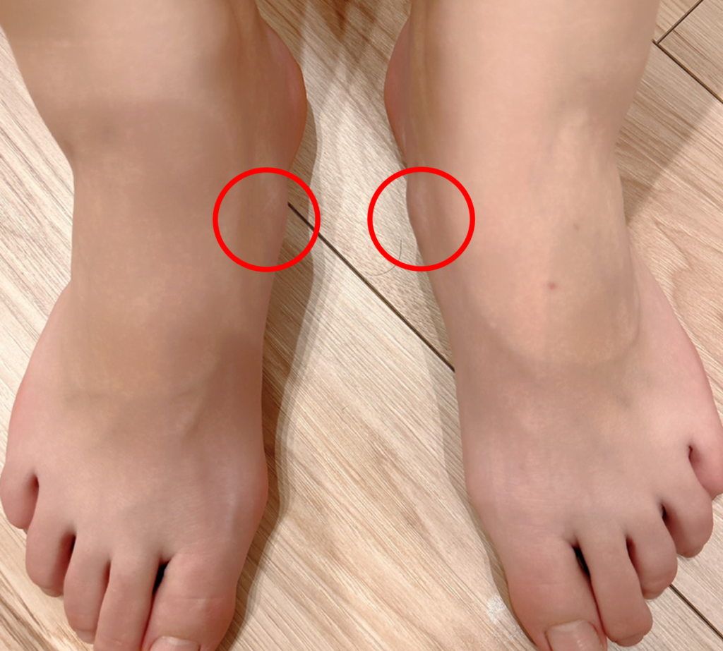 〇かかとの内側が出っ張る